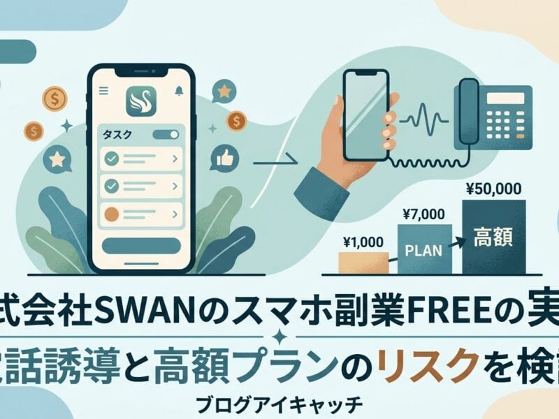 スマホ副業「FREE」(株式会社SWAN)の実態を検証。電話誘導・高額サポートのリスクが懸念され、口コミもネガティブ傾向。内容不透明な構造を正直解説し、チェックリストで判断材料を提供。