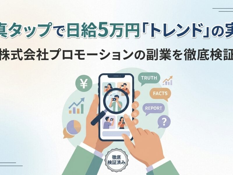 写真タップで日給5万円の副業「トレンド」を検証。広告と実態のギャップ、高額勧誘、口コミの懸念点を根拠付きで解説。リスクを理解し、安全な副業選びの参考に。